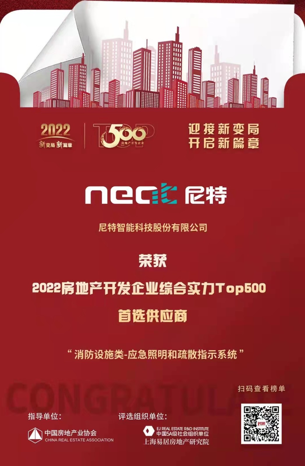 恭喜尼特連續(xù)五年獲評500強(qiáng)地產(chǎn)首選供應(yīng)商殊榮!!智能疏散品類位列榜首?。?!